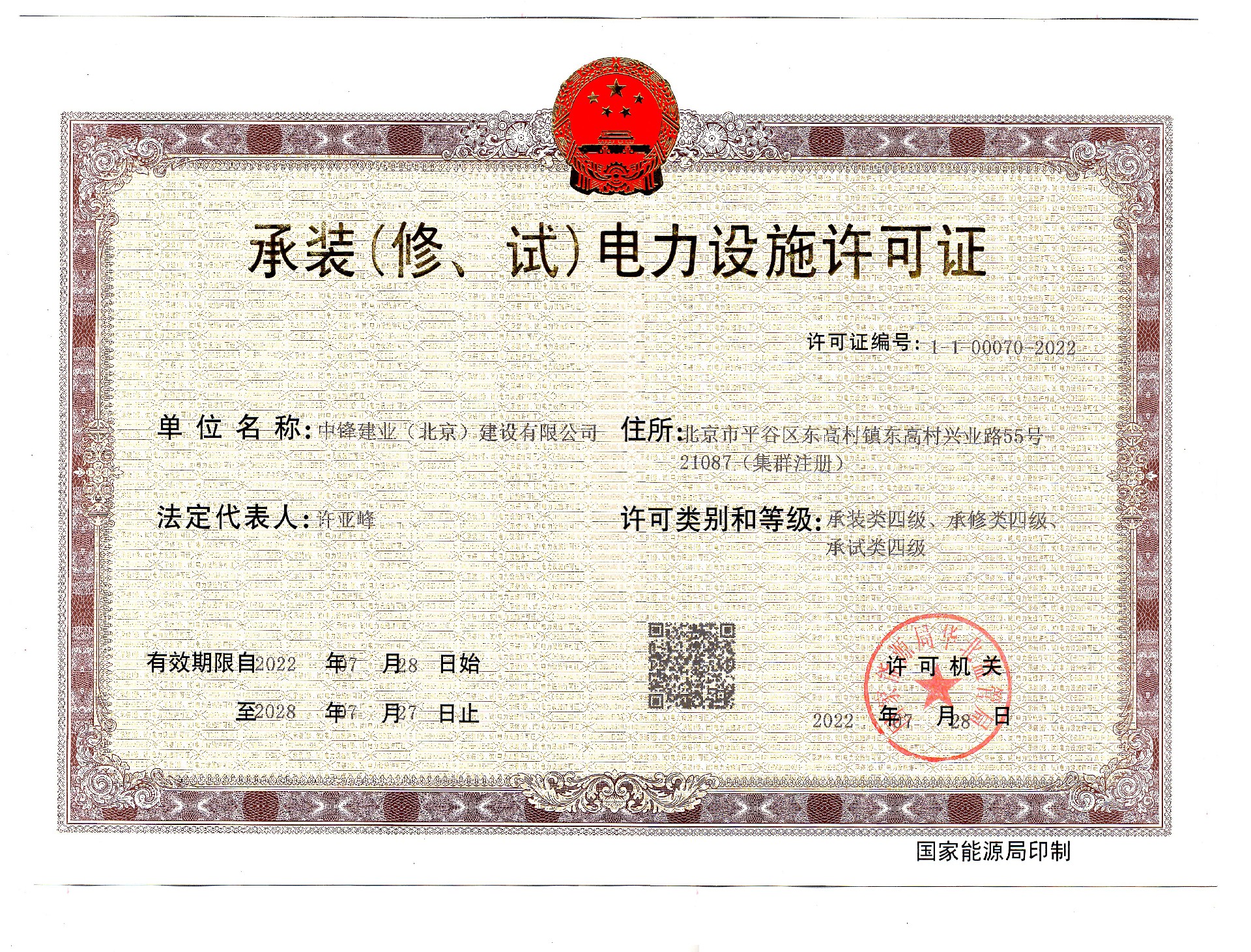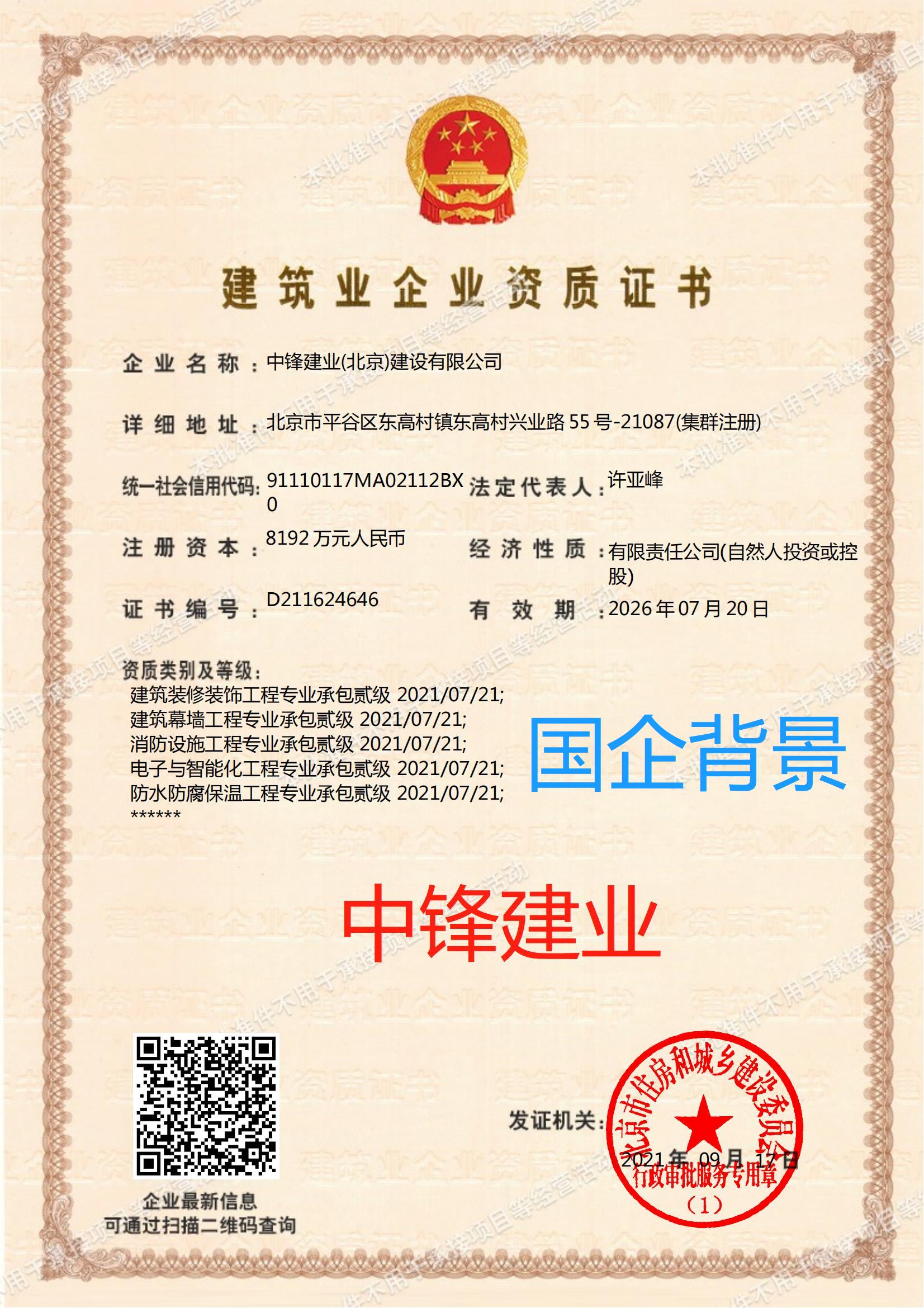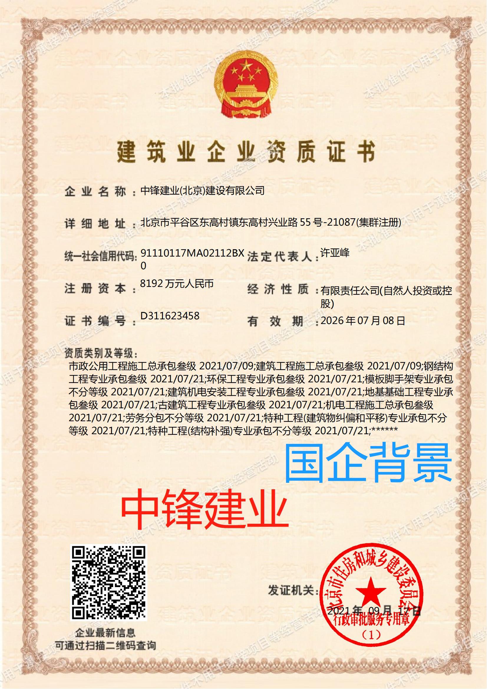 中鋒建業(yè)(北京)建設(shè)有限公司資質(zhì)