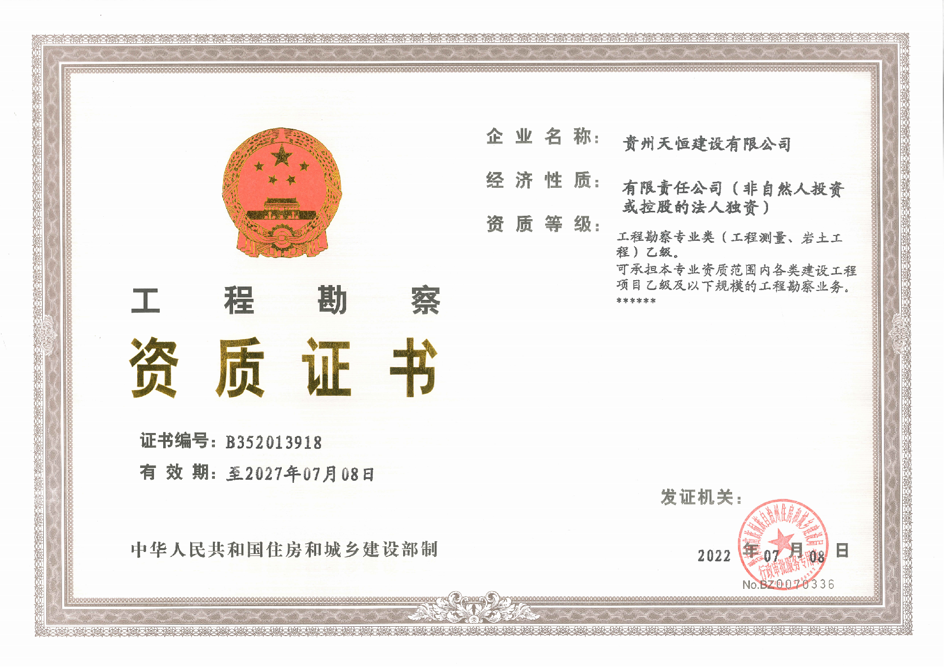 貴州天恒建設(shè)有限公司資質(zhì)范圍及等級(jí):
