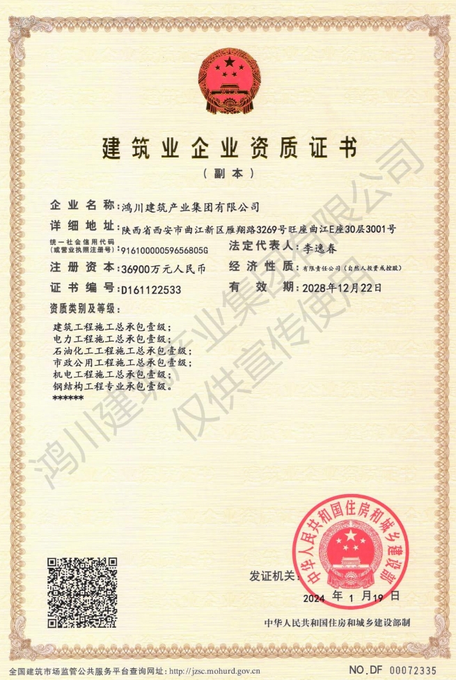 住建部鴻川建筑產業集團有限公司資質查詢